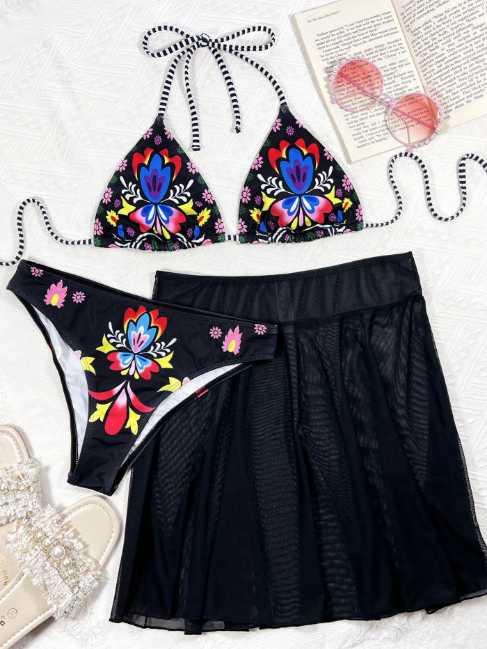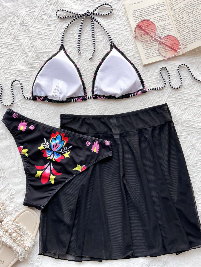 (Real Image)2022 Styles Women Fashion INS Styles Mesh Hem Skirts + Bikini Set 3 Piece SwimwearSKU: #CF55043-1