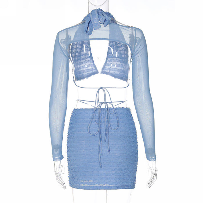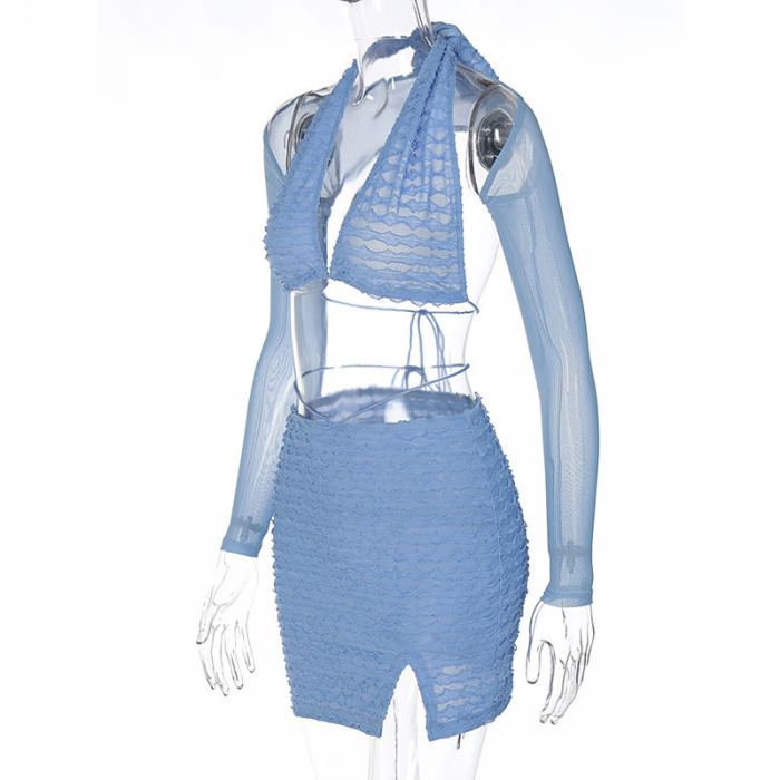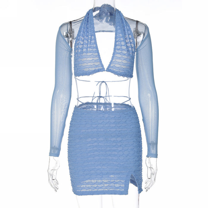 (Real Image)2022 Styles Women Fashion INS Styles Mesh Long Sleeve Two Piece DressSKU: #CF22693-1