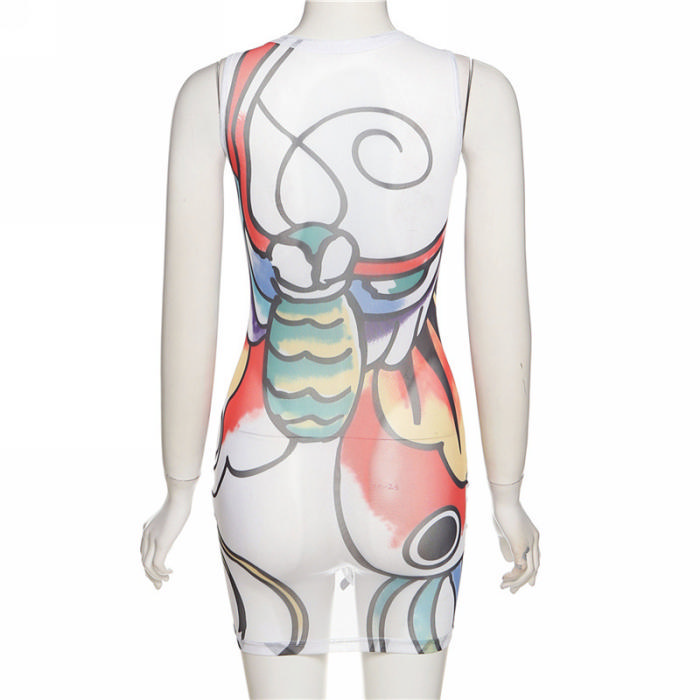 (Real Image)2022 Styles Women Fashion INS Styles Mesh Print Club DressSKU: #CF48629-1