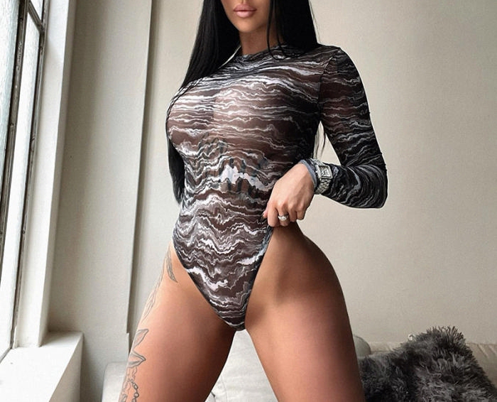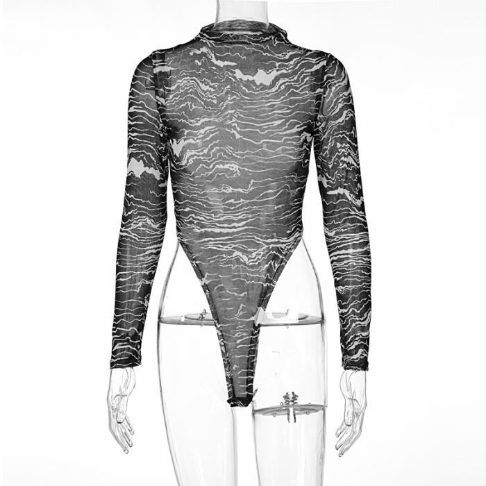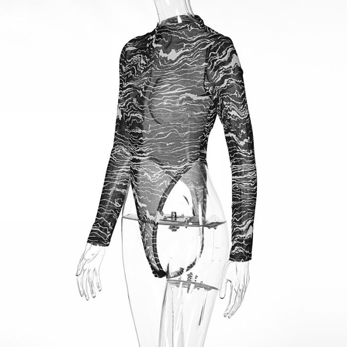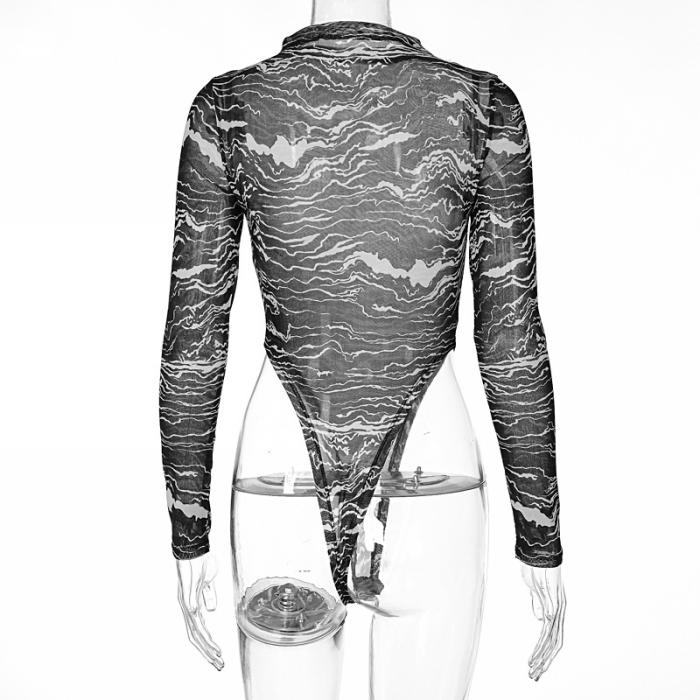 (Real Image)2022 Styles Women Fashion INS Styles Mesh Print Long Sleeve BodysuitSKU: #CF22649-1