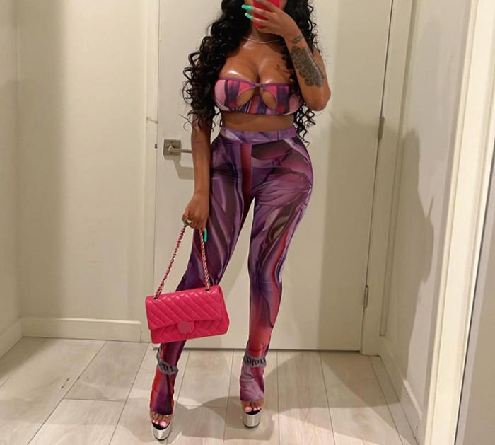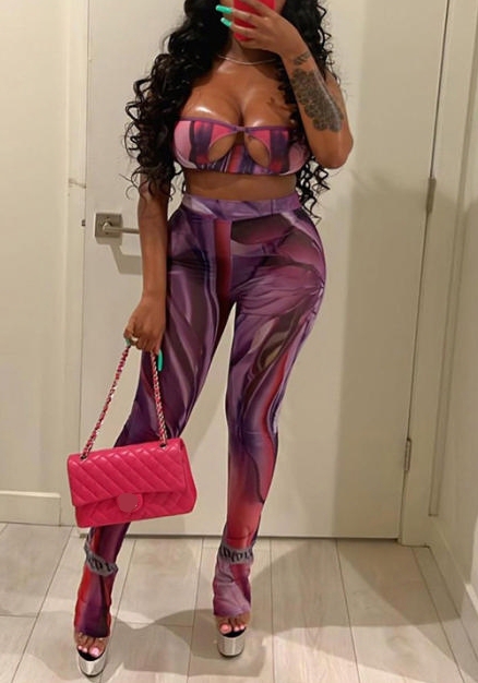 (Real Image)2022 Styles Women Fashion INS Styles Mesh Purple Two Piece SuitSKU: #CF49700-1