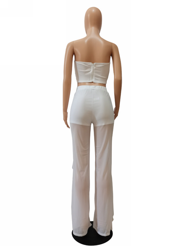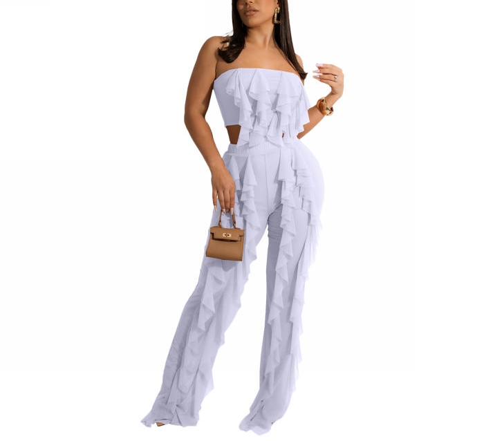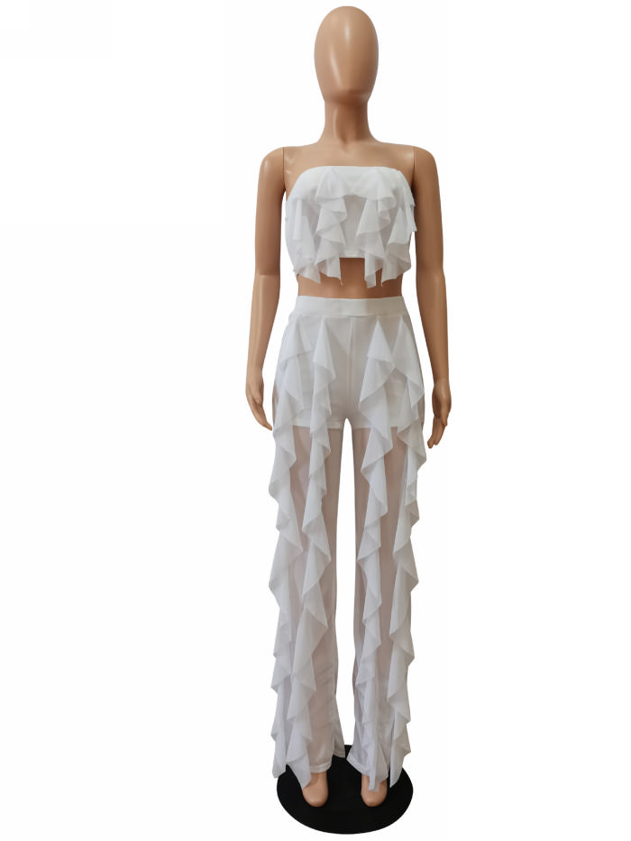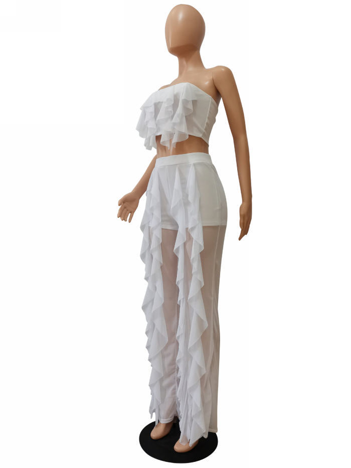 (Real Image)2022 Styles Women Fashion INS Styles Mesh Ruffle Solid Color Two Piece SuitSKU: #XF19191-3