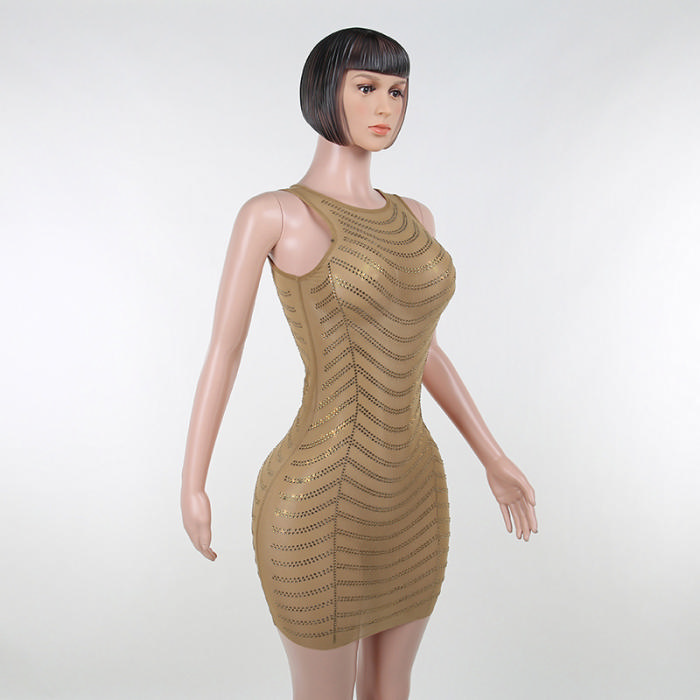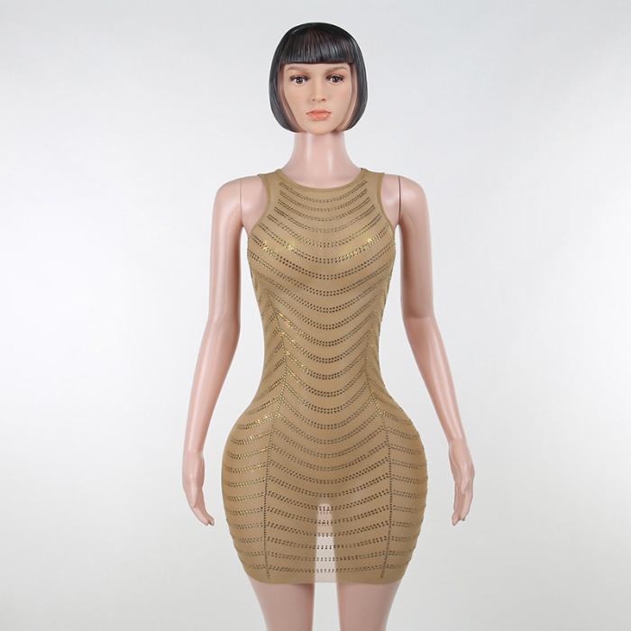 (Real Image)2022 Styles Women Fashion INS Styles Mesh Sequins Mnini DressSKU: #XF92526-1
