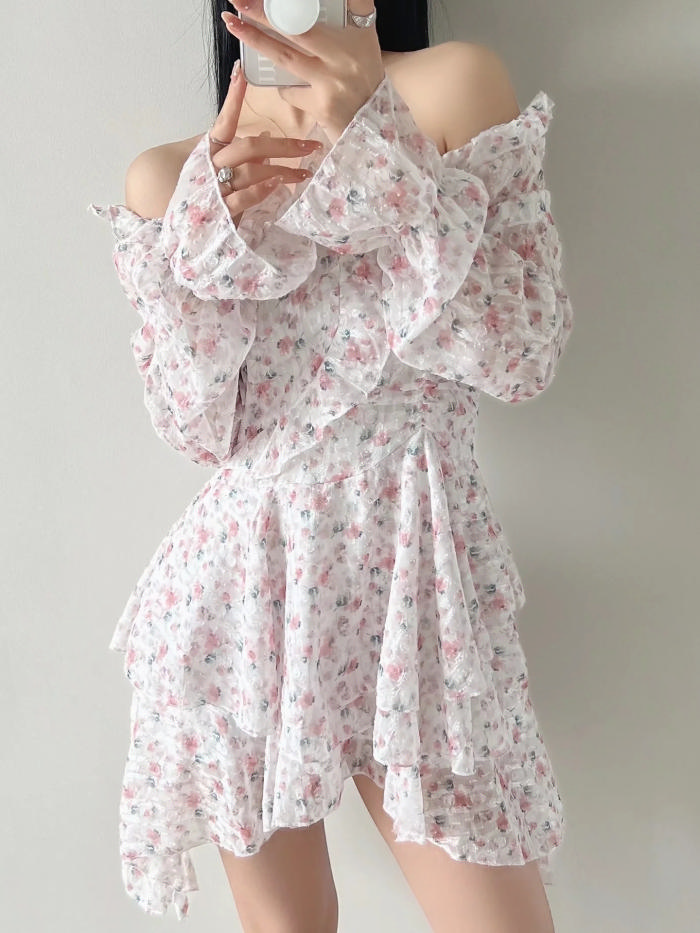 (Real Image)2022 Styles Women Fashion INS Styles Mesh Side Lace Mini DressSKU: #CF08818-1