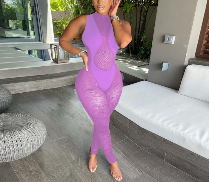 (Real Image)2022 Styles Women Fashion INS Styles Mesh Sleeveless JumpsuitSKU: #CF59152-2