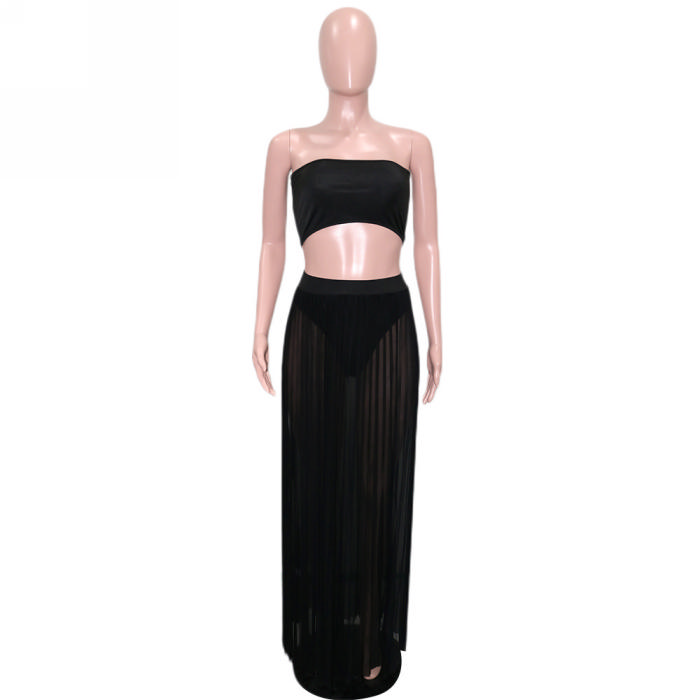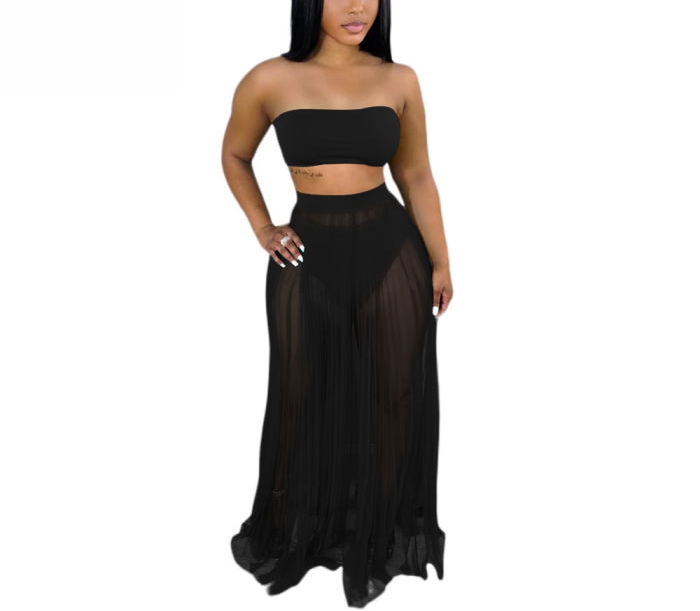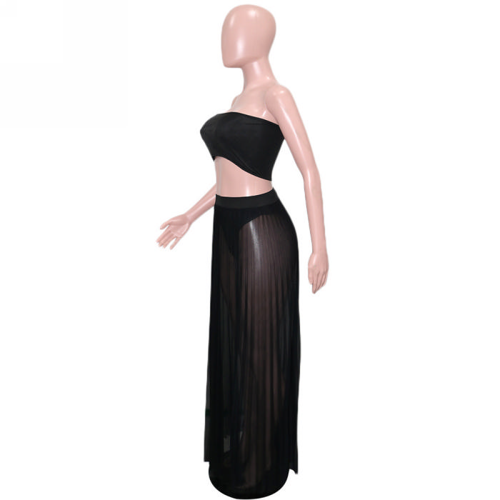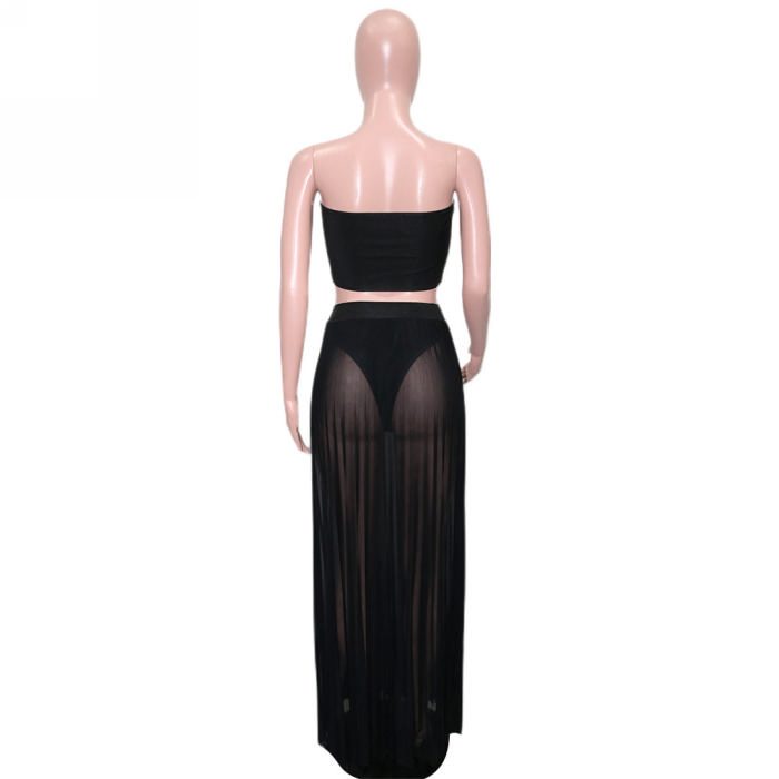 (Real Image)2022 Styles Women Fashion INS Styles Mesh Tube Tops+Maxi Skirts Two Piece DressSKU: #XF14868-1
