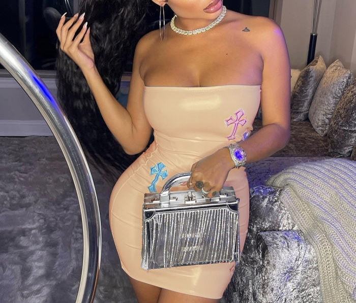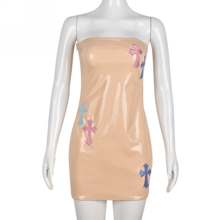 (Real Image)2022 Styles Women Fashion INS Styles PU Cross Mini DressSKU: #CF59207-8