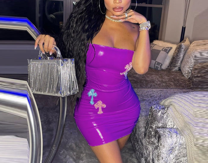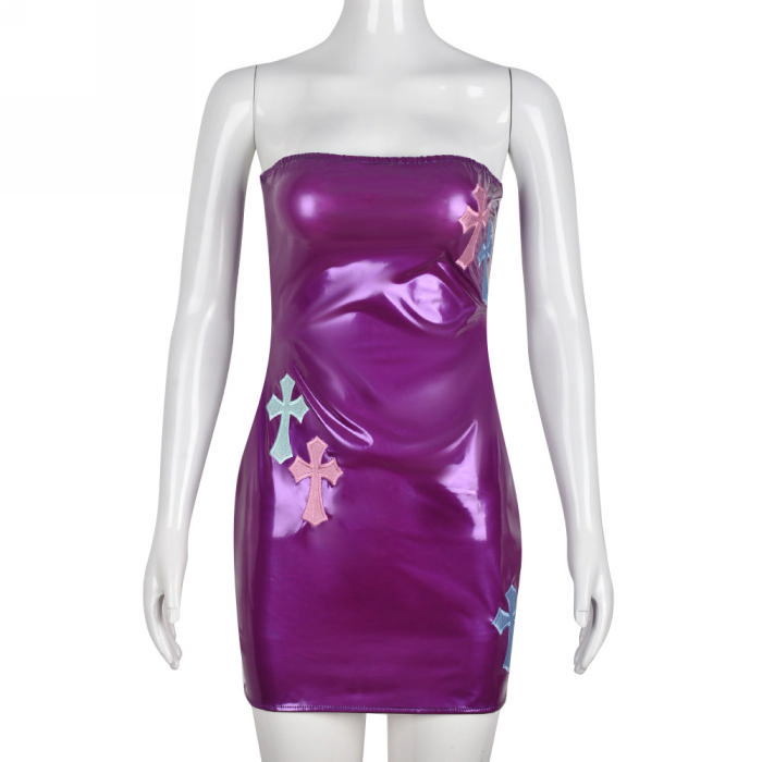 (Real Image)2022 Styles Women Fashion INS Styles PU Cross Mini DressSKU: #CF59207-7