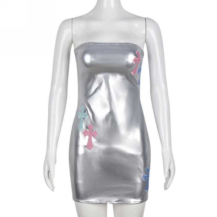 (Real Image)2022 Styles Women Fashion INS Styles PU Cross Mini DressSKU: #CF59207-4