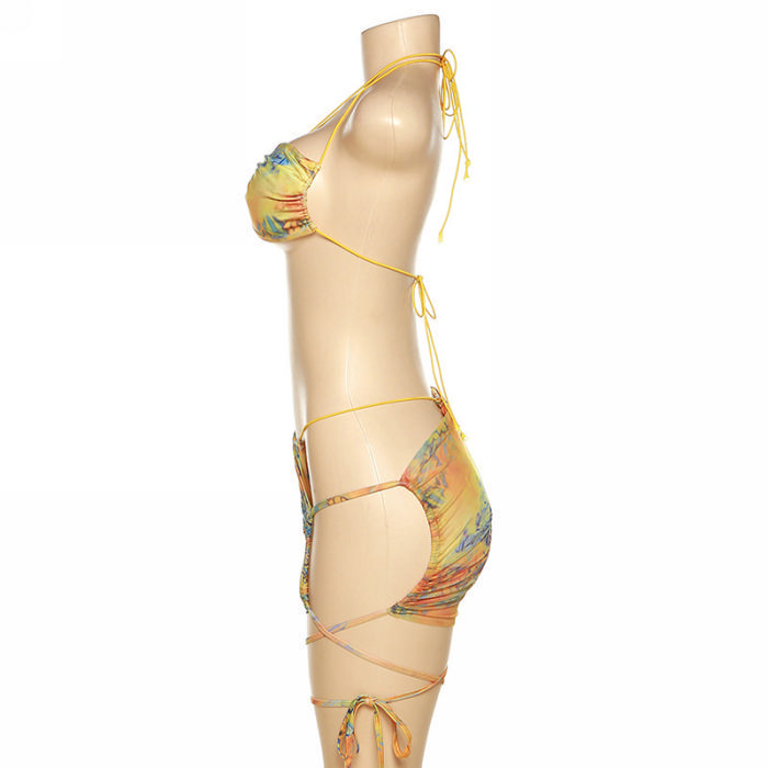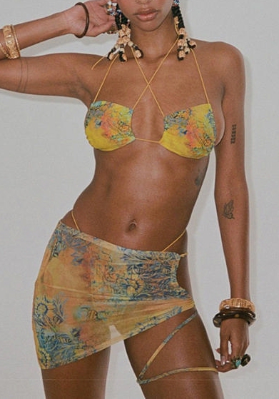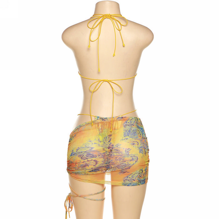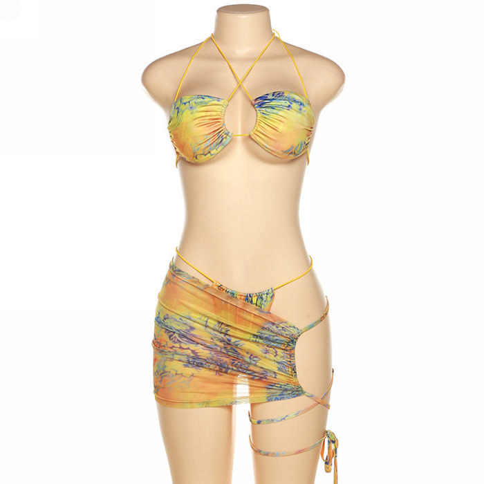 (Real Image)2022 Styles Women Fashion INS Styles PYellow Print 3 Piece SwimsuitSKU: #CF49825-1