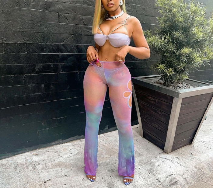 (Real Image)2022 Styles Women Fashion INS Styles Pink Bar+Long Pants Two Piece SuitSKU: #CF49837-1