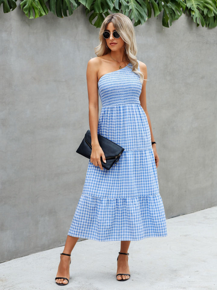 (Real Image)2022 Styles Women Fashion INS Styles Plaid Bohemian Maxi DressSKU: #XF28354-1