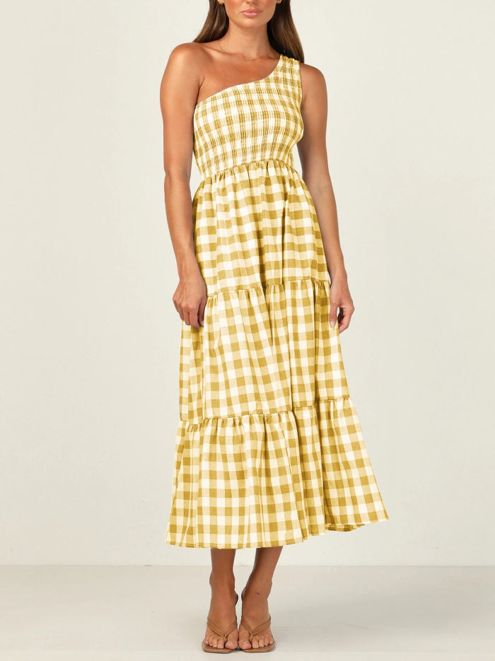 (Real Image)2022 Styles Women Fashion INS Styles Plaid Bohemian Maxi DressSKU: #XF28396-4