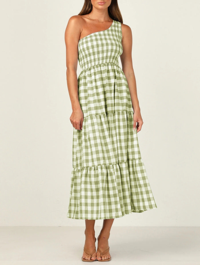 (Real Image)2022 Styles Women Fashion INS Styles Plaid Bohemian Maxi DressSKU: #XF28396-2