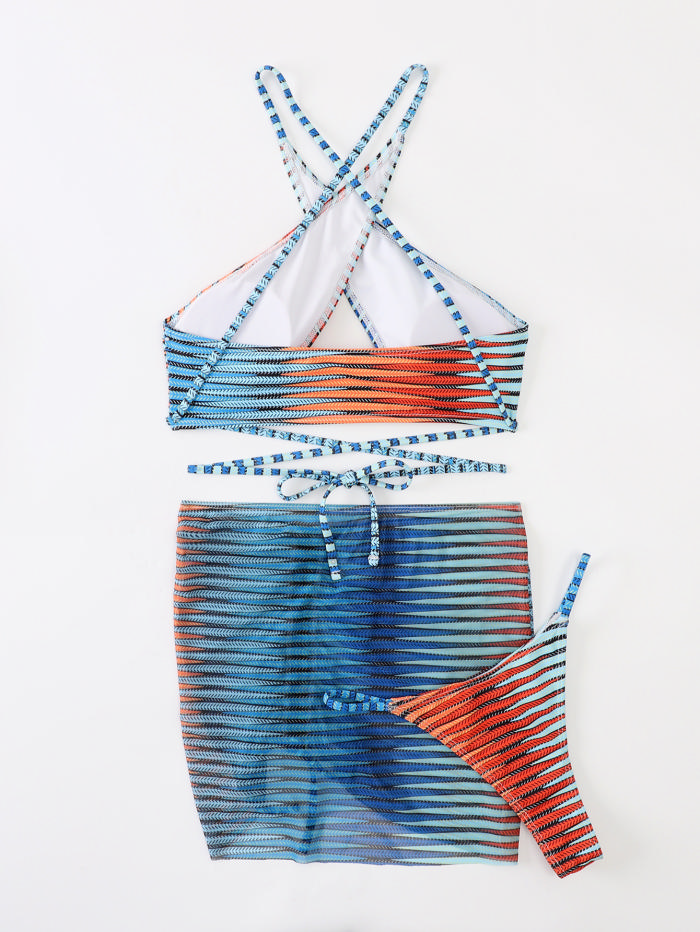 (Real Image)2022 Styles Women Fashion INS Styles Print Bikini Set + Skrits 3 Piece SuitSKU: #CF31163-1