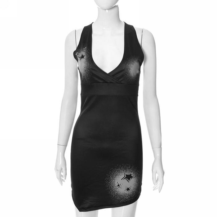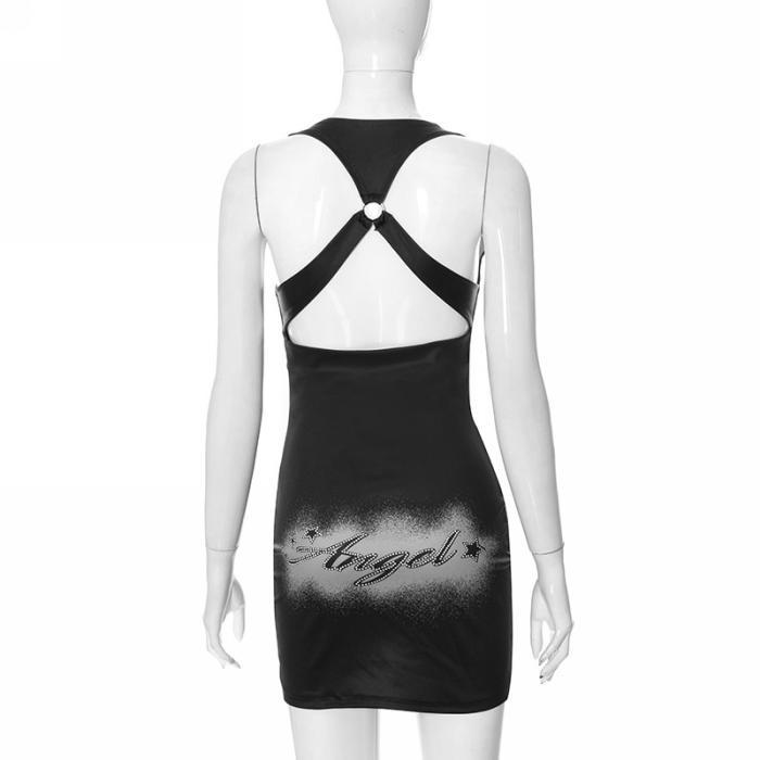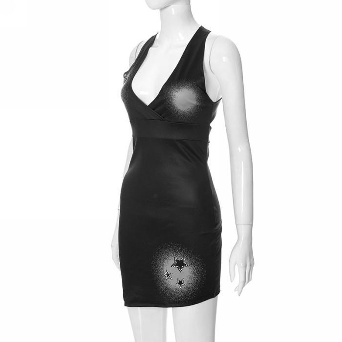 (Real Image)2022 Styles Women Fashion INS Styles Print Black Halter DressSKU: #CF68068-1
