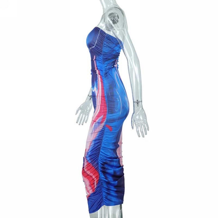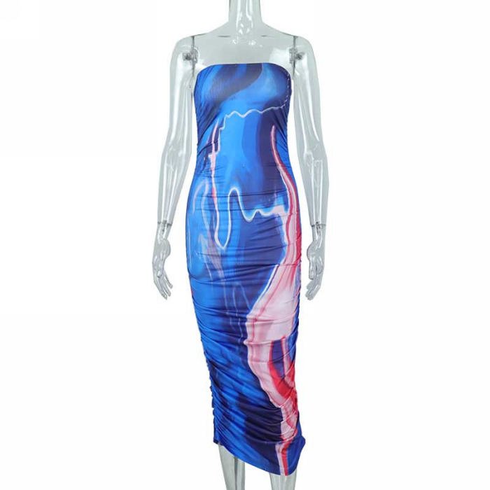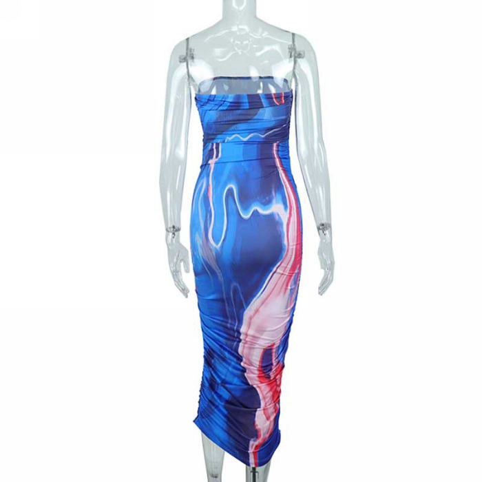 (Real Image)2022 Styles Women Fashion INS Styles Print Blue Maxi DressSKU: #CF67096-1