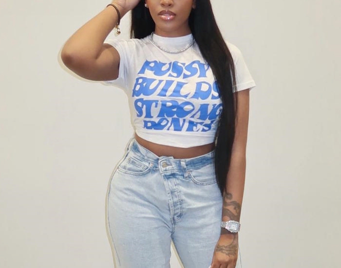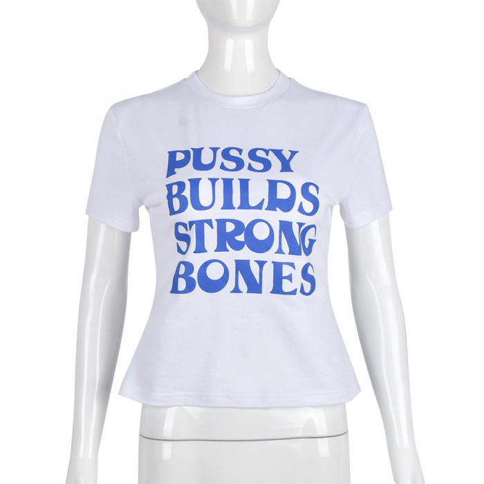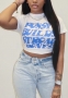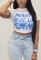 (Real Image)2022 Styles Women Fashion INS Styles Print Blue Short Sleeve TeeSKU: #CF59202-1
