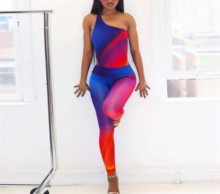 (Real Image)2022 Styles Women Fashion INS Styles Print Bodysuit + Long Pants Two Piece SuitSKU: #CF49720-1