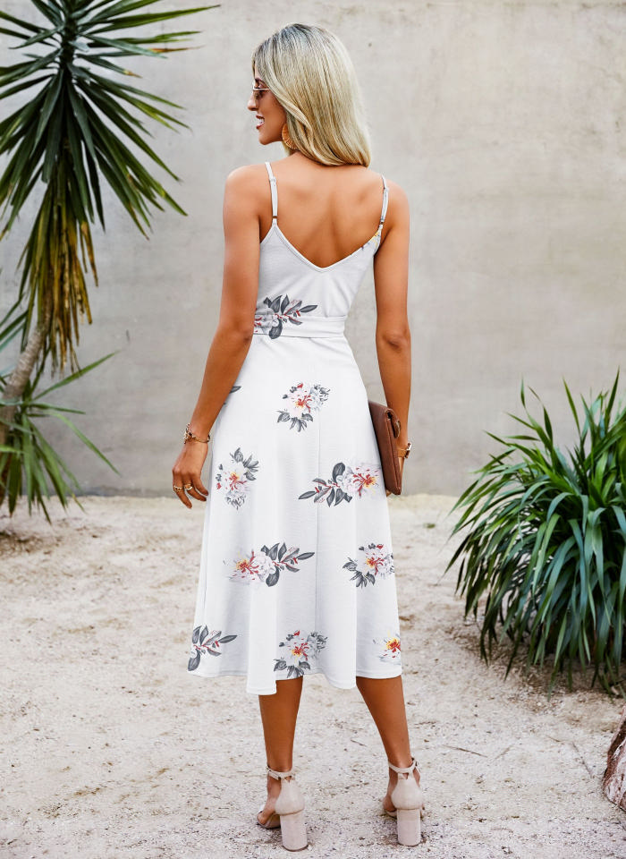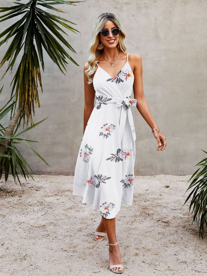 (Real Image)2022 Styles Women Fashion INS Styles Print Bohemian Dress with Waist TieSKU: #XF28382-1