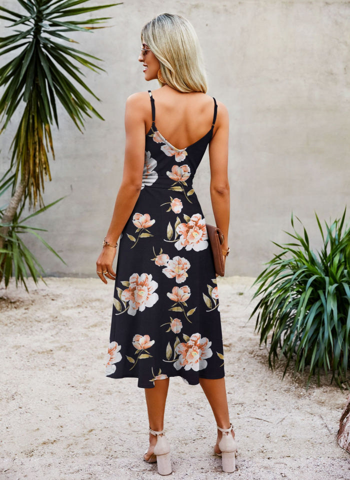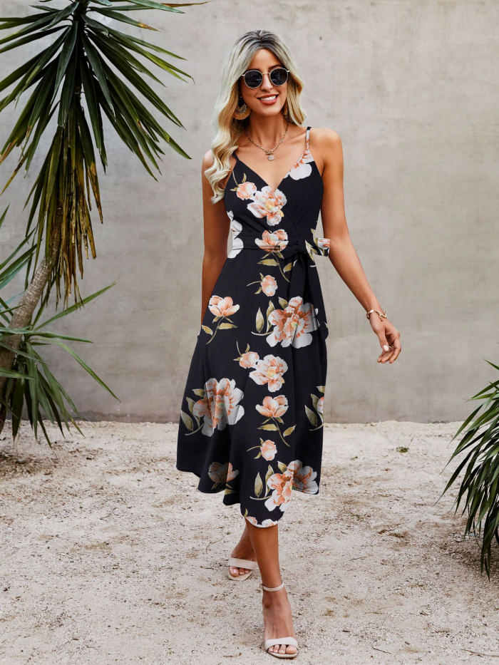 (Real Image)2022 Styles Women Fashion INS Styles Print Bohemian Dress with Waist TieSKU: #XF28382-7