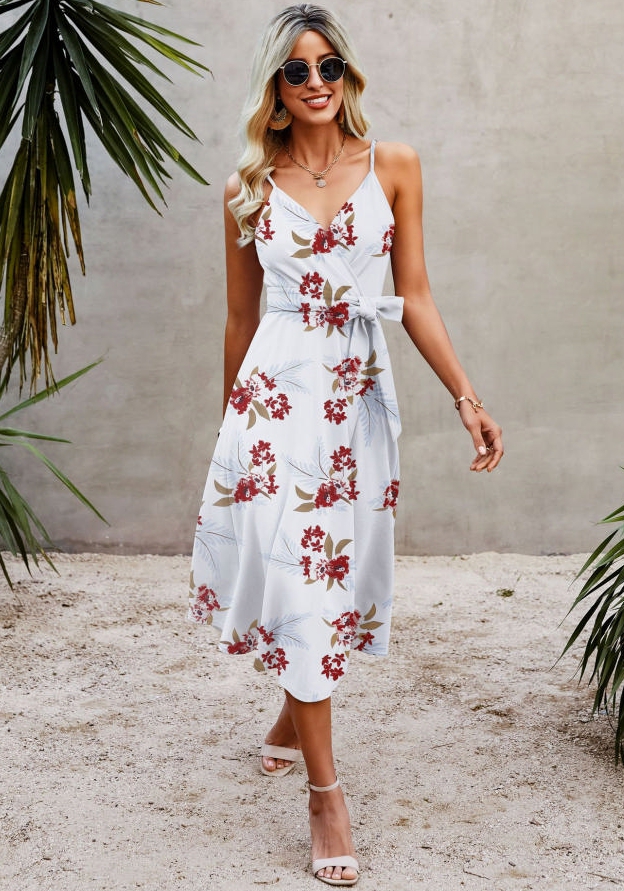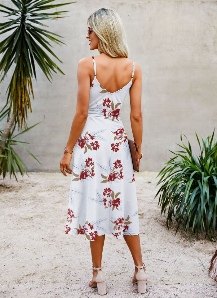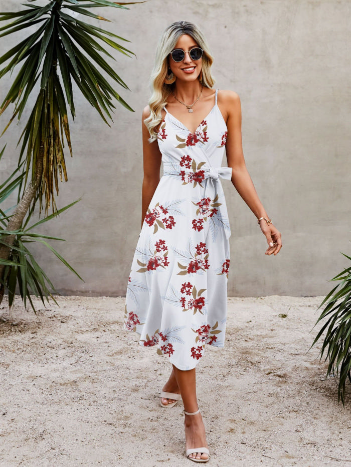 (Real Image)2022 Styles Women Fashion INS Styles Print Bohemian Dress with Waist TieSKU: #XF28382-5