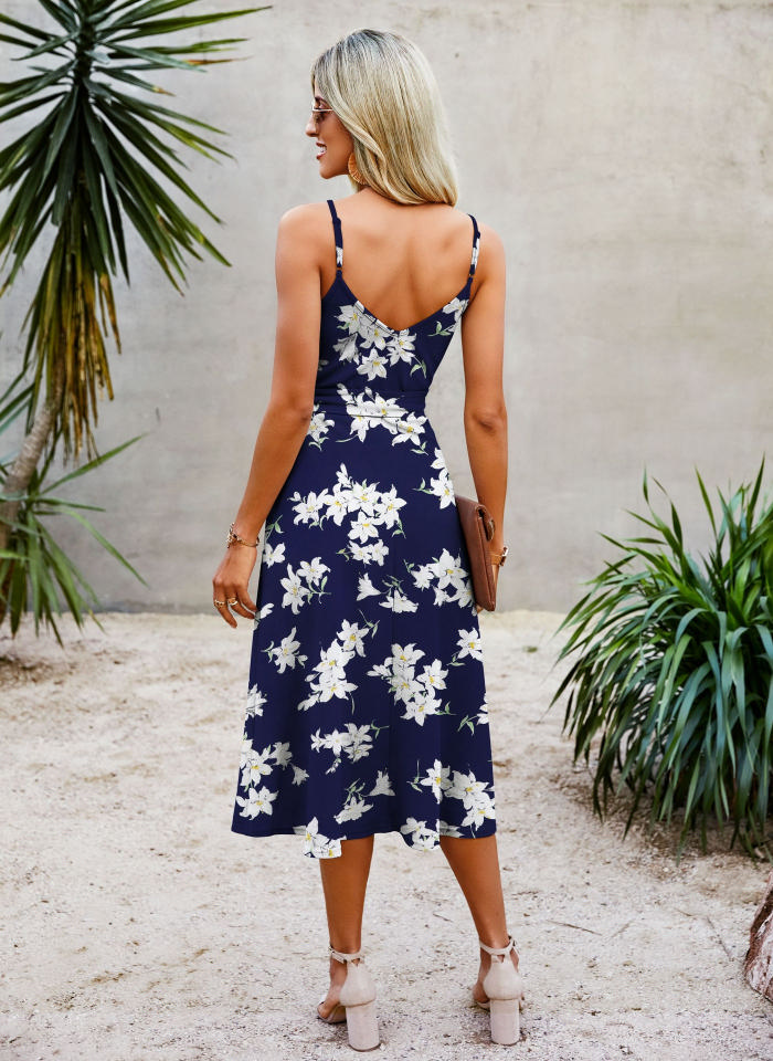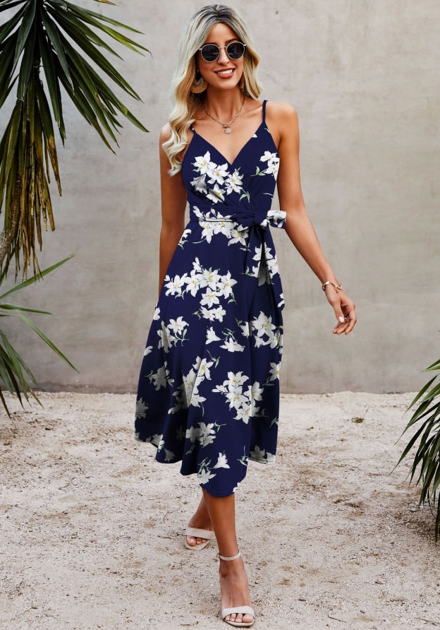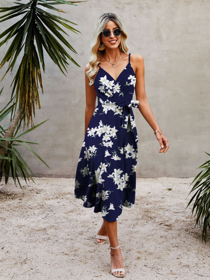 (Real Image)2022 Styles Women Fashion INS Styles Print Bohemian Dress with Waist TieSKU: #XF28382-4