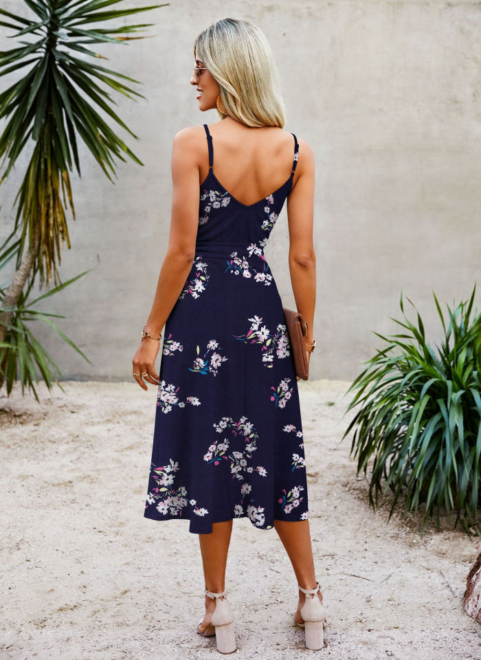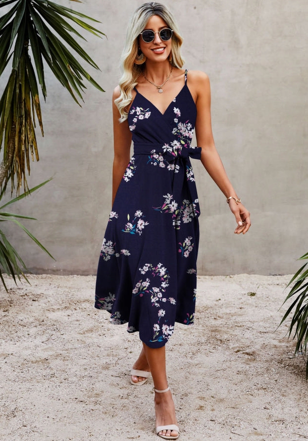 (Real Image)2022 Styles Women Fashion INS Styles Print Bohemian Dress with Waist TieSKU: #XF28382-2