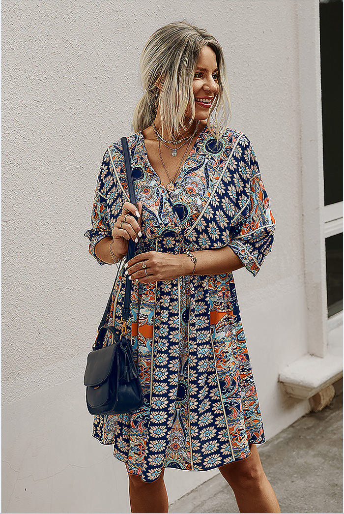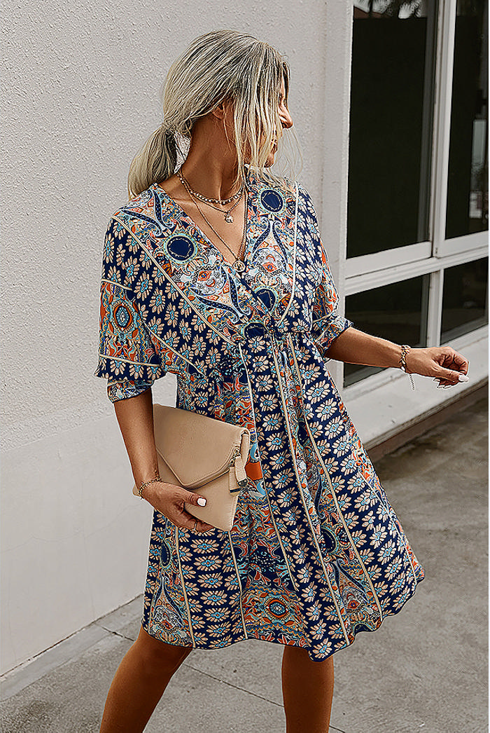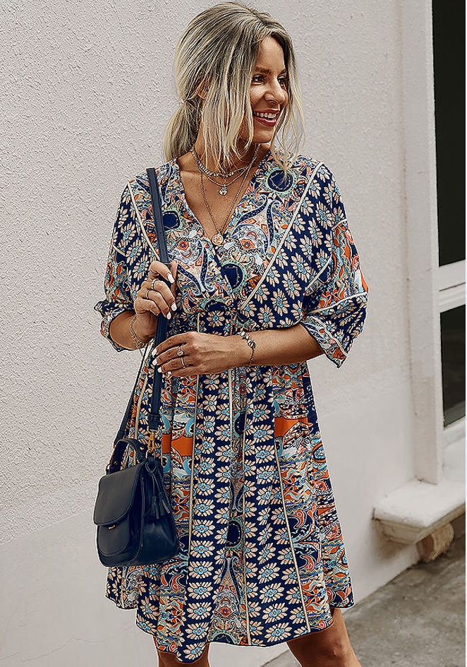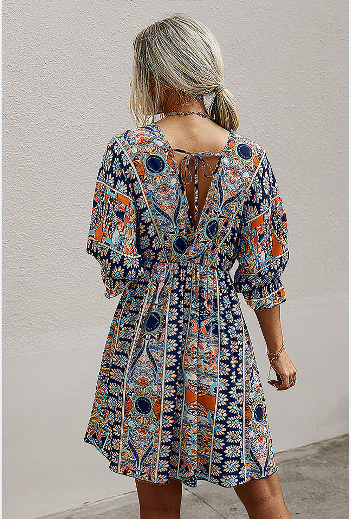 (Real Image)2022 Styles Women Fashion INS Styles Print Bohemian Mini DressSKU: #XF28352-3