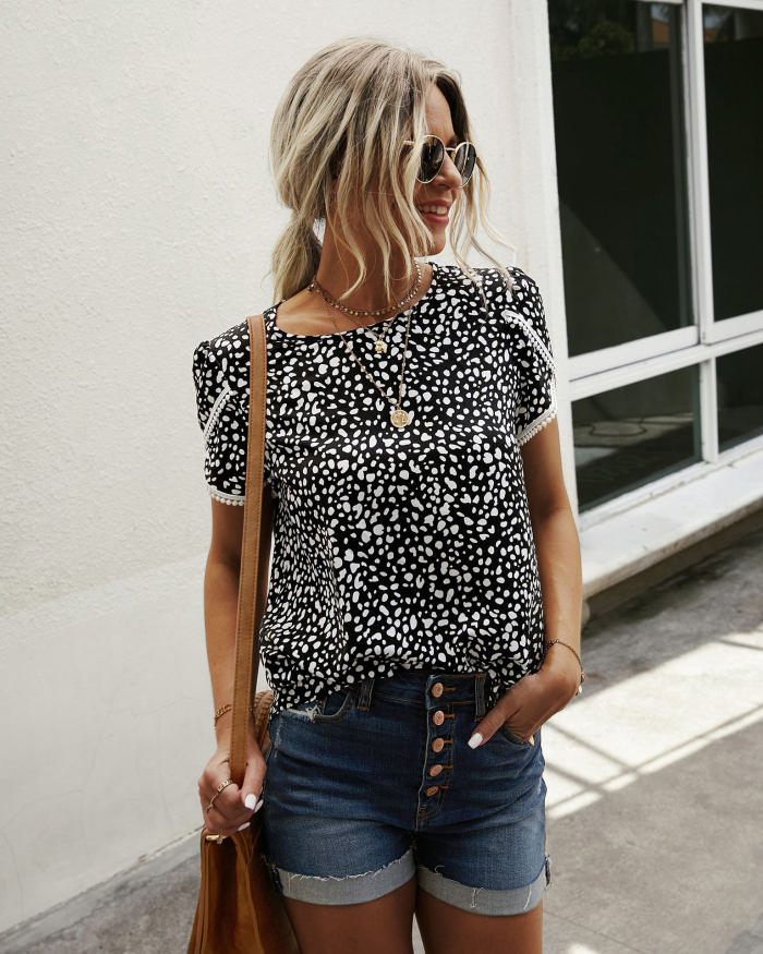 (Real Image)2022 Styles Women Fashion INS Styles Print Bohemian Short Sleeve TeeSKU: #XF28353-3