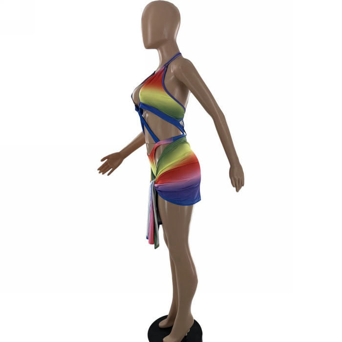 (Real Image)2022 Styles Women Fashion INS Styles Print Colorful One Piece Swimwear+SkirtsSKU: #OU0096-1