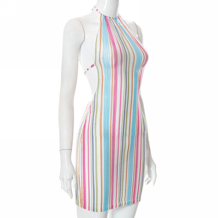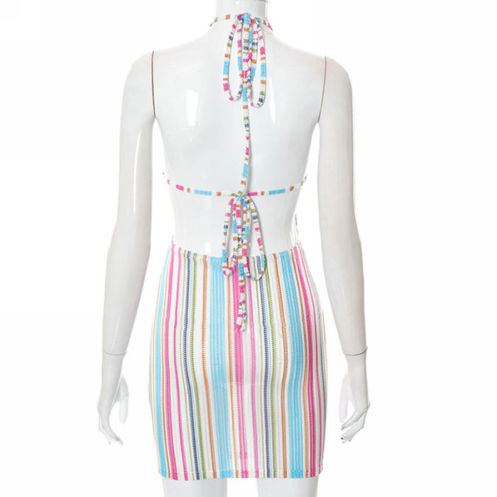 (Real Image)2022 Styles Women Fashion INS Styles Print Contrast Color Backless Club DressSKU: #OEM6571-1