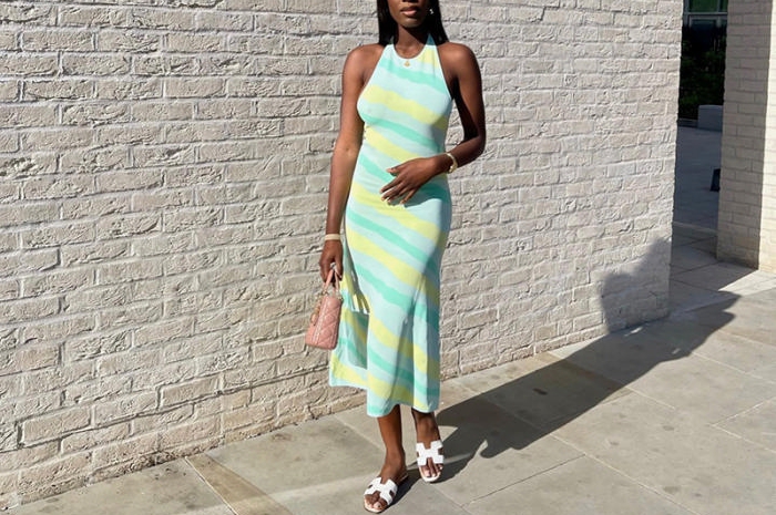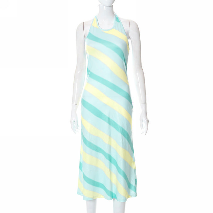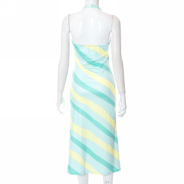 (Real Image)2022 Styles Women Fashion INS Styles Print Contrast Color Halter Maxi DressSKU: #CF68028-1