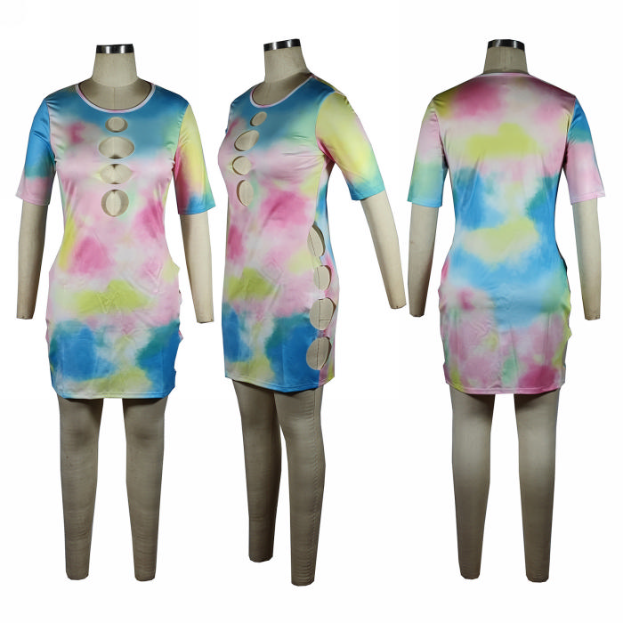 (Real Image)2022 Styles Women Fashion INS Styles Print Cut Out Mini DressSKU: #XF13411-1