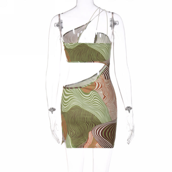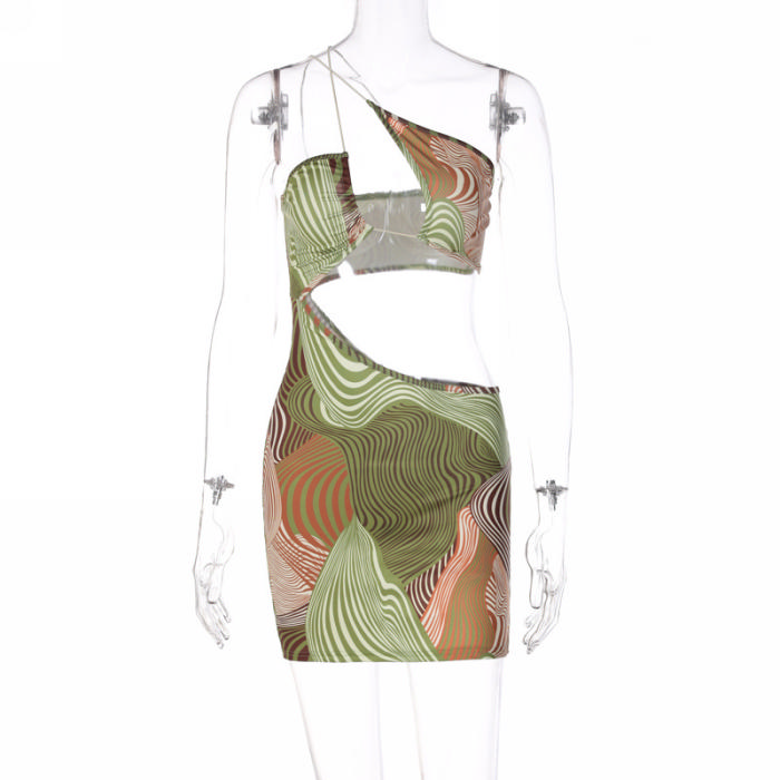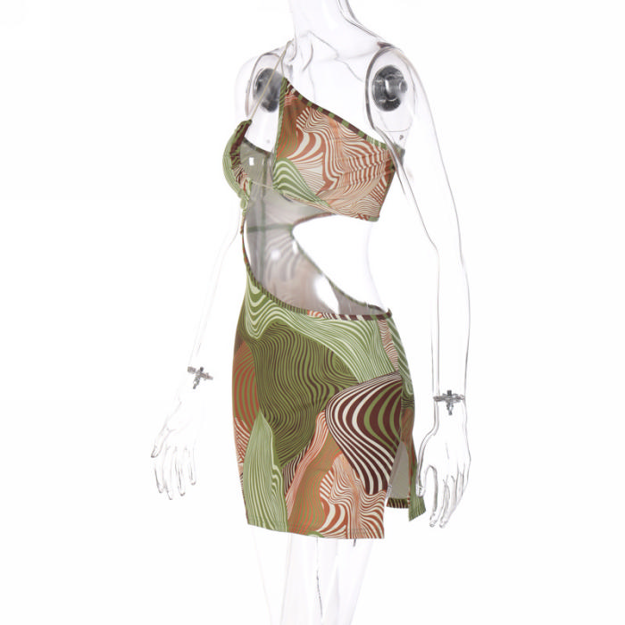 (Real Image)2022 Styles Women Fashion INS Styles Print Cut Out Mini DressSKU: #CF22704-1