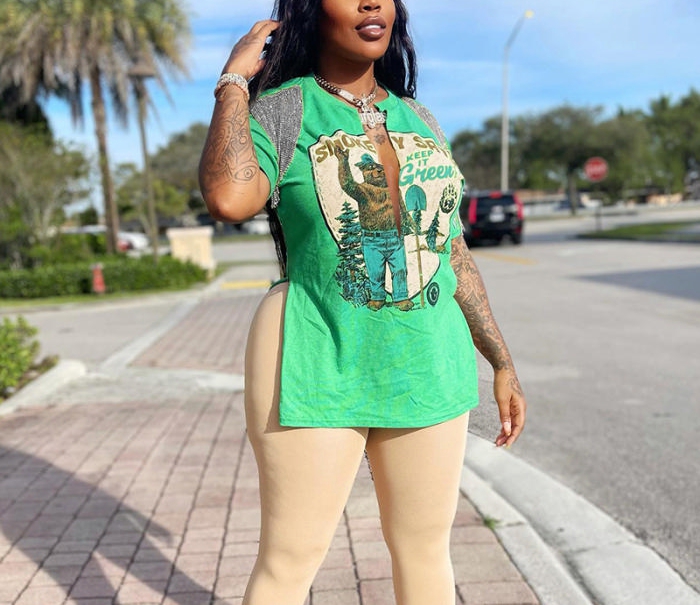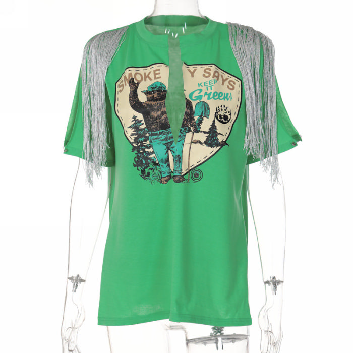 (Real Image)2022 Styles Women Fashion INS Styles Print Double Tassle TeeSKU: #OM0222-1