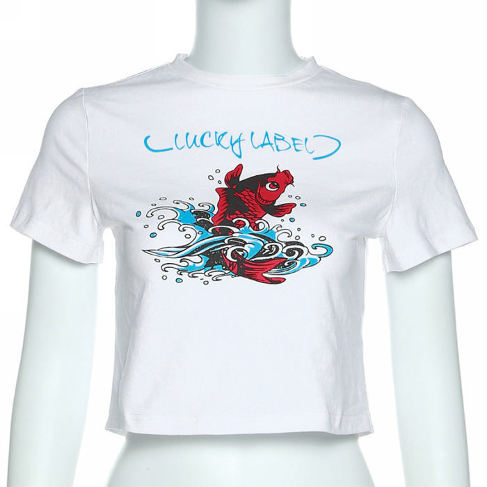 (Real Image)2022 Styles Women Fashion INS Styles Print Fish Short Sleeve TeeSKU: #CF12325-1