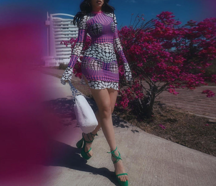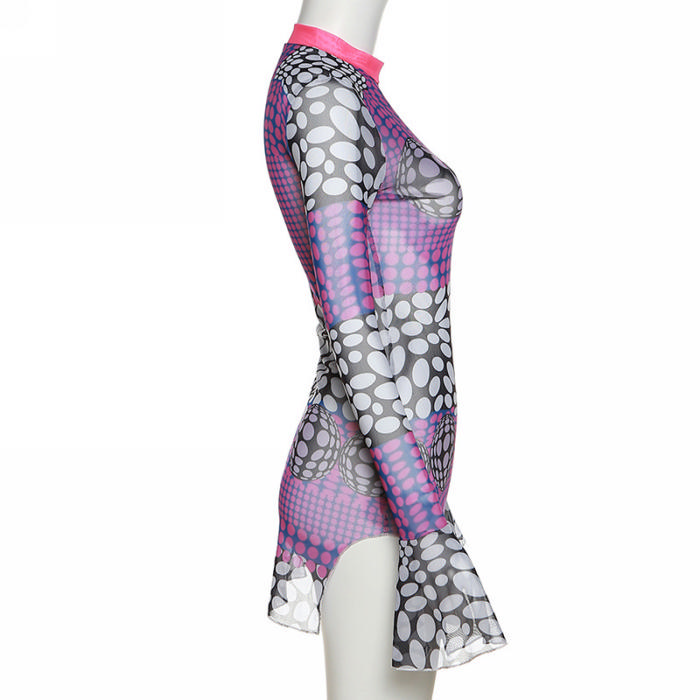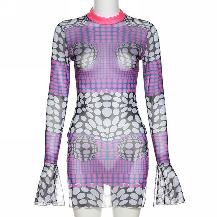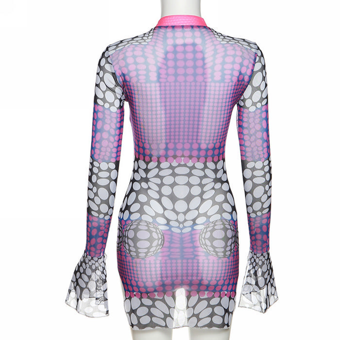 (Real Image)2022 Styles Women Fashion INS Styles Print Flare Long Sleeve Mini DressSKU: #CF48615-1