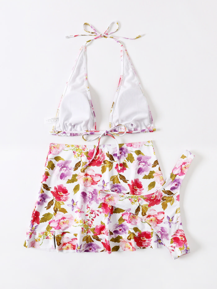 (Real Image)2022 Styles Women Fashion INS Styles Print Floral Bikini Set + Skirts 3 Piece SuitSKU: #CF31148-1