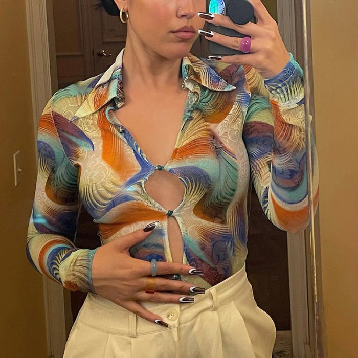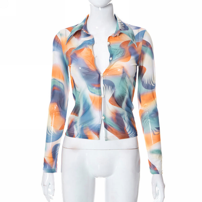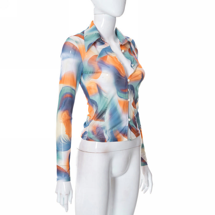 (Real Image)2022 Styles Women Fashion INS Styles Print Front Button ShirtsSKU: #CF68066-1