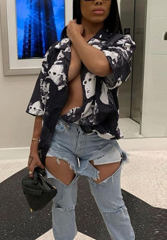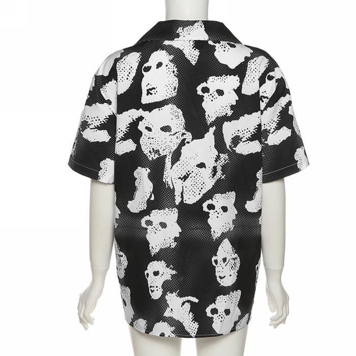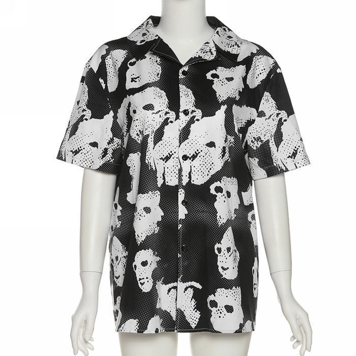 (Real Image)2022 Styles Women Fashion INS Styles Print Front Button ShirtsSKU: #CF49834-1