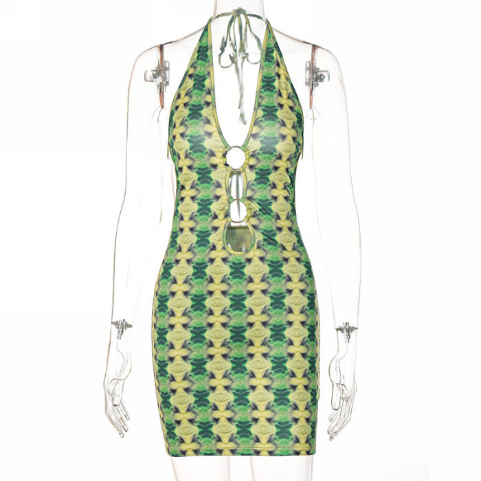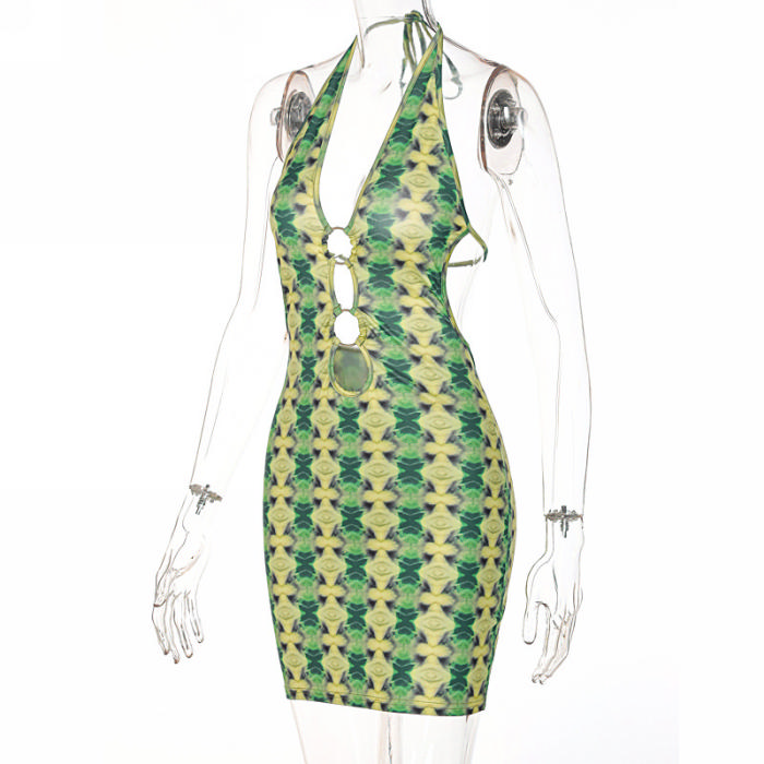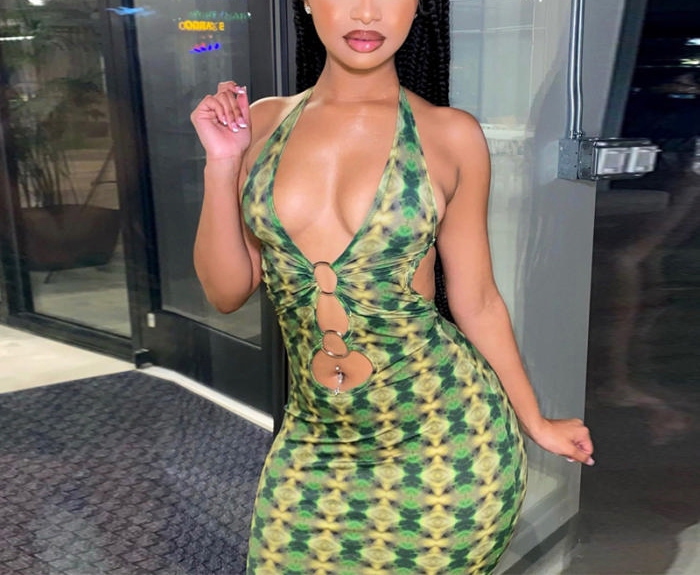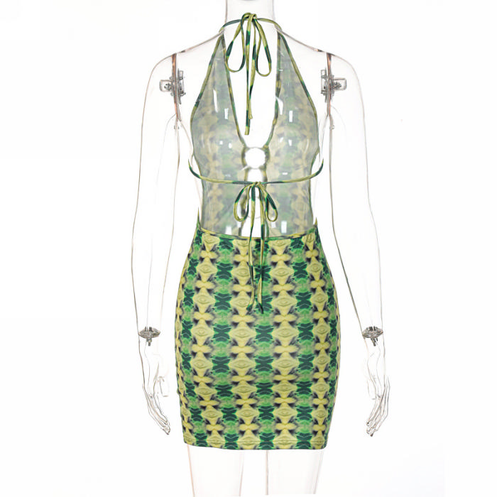 (Real Image)2022 Styles Women Fashion INS Styles Print Green Club DressSKU: #CF22640-1
