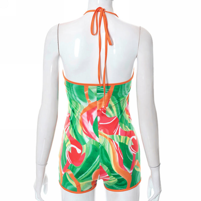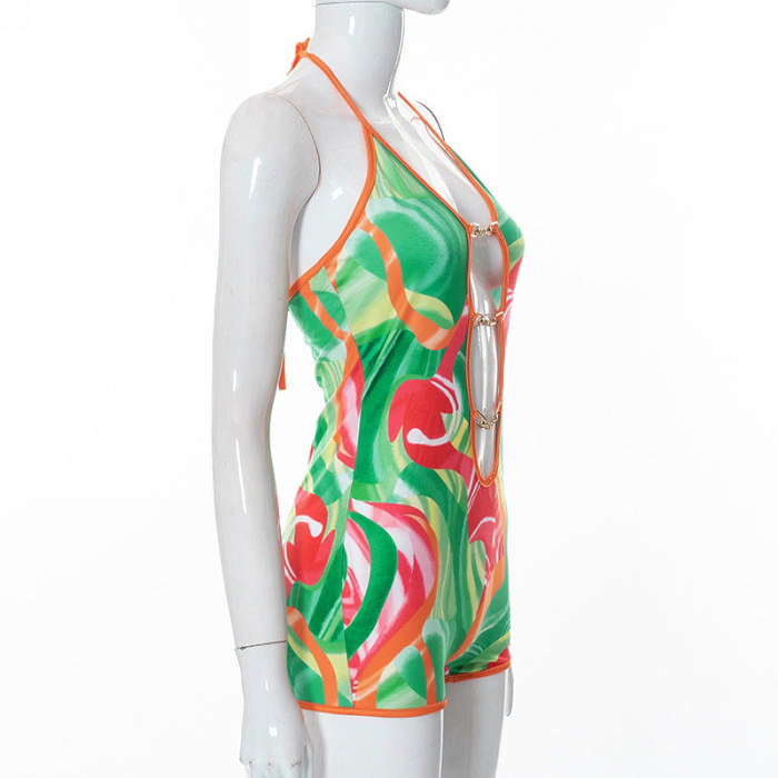 (Real Image)2022 Styles Women Fashion INS Styles Print Green RomperSKU: #CF69008-1