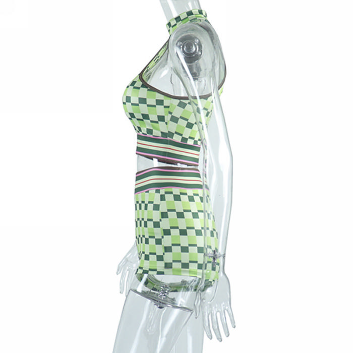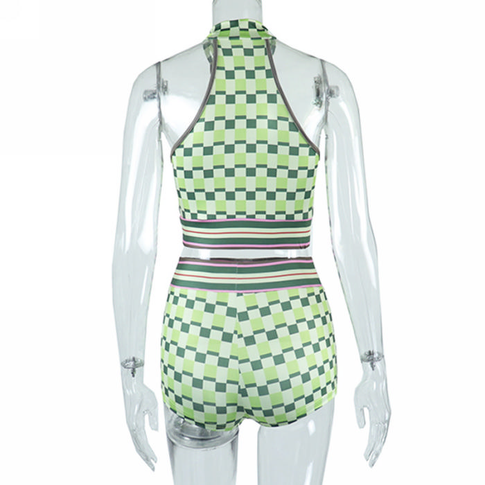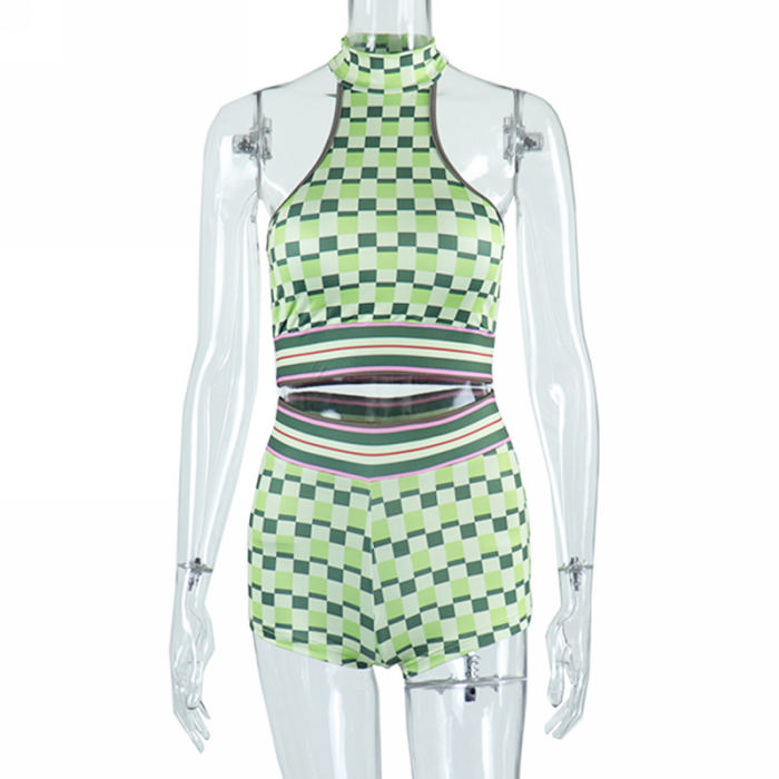(Real Image)2022 Styles Women Fashion INS Styles Print Green Short Two Piece SuitSKU: #CF67093-1