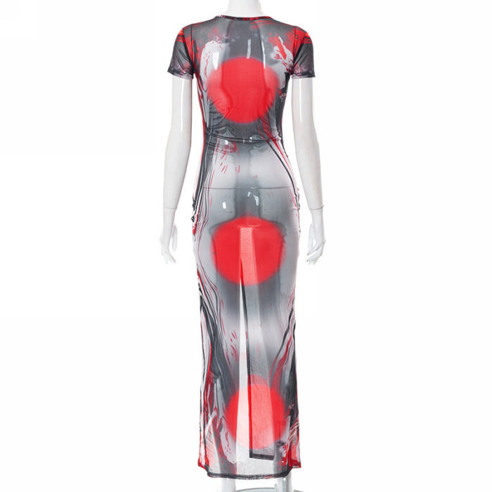 (Real Image)2022 Styles Women Fashion INS Styles Print High Split Maxi DressSKU: #CF68035-1