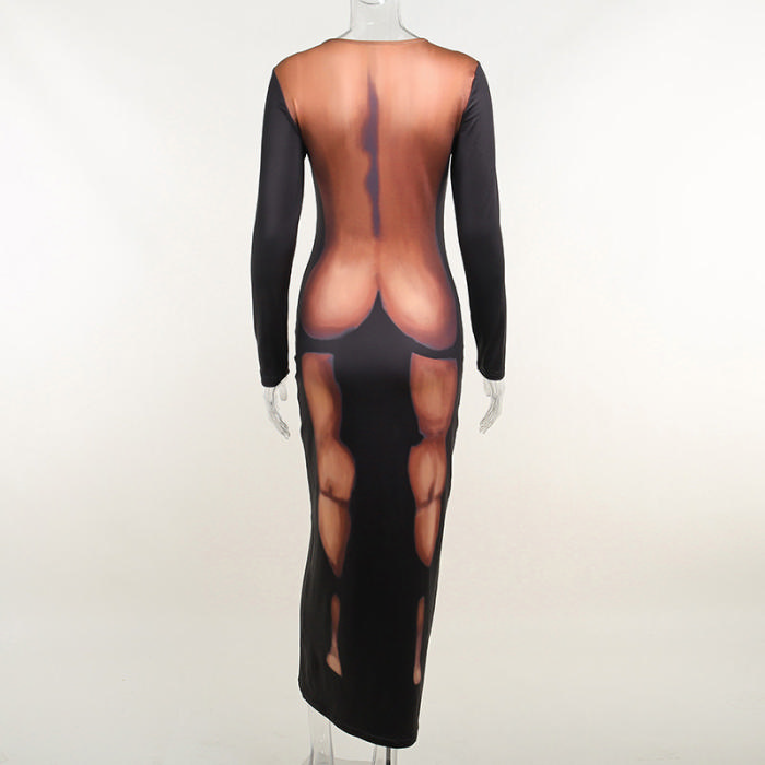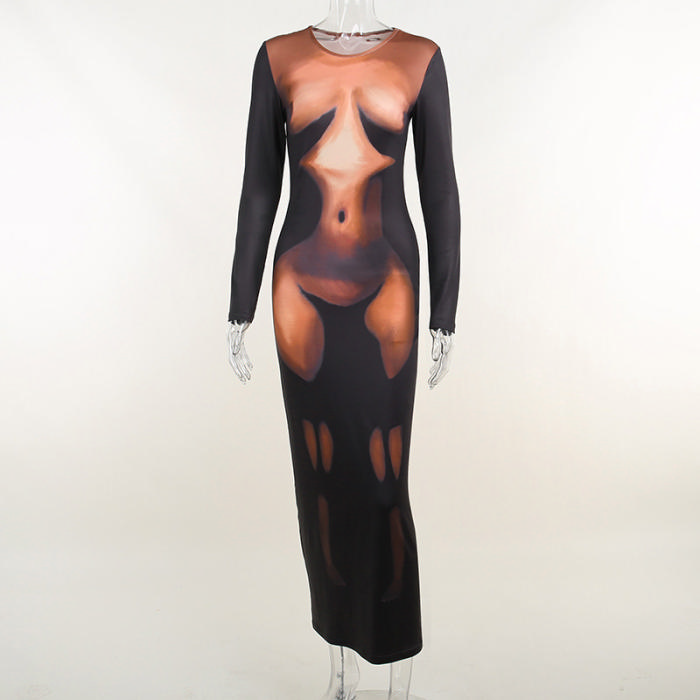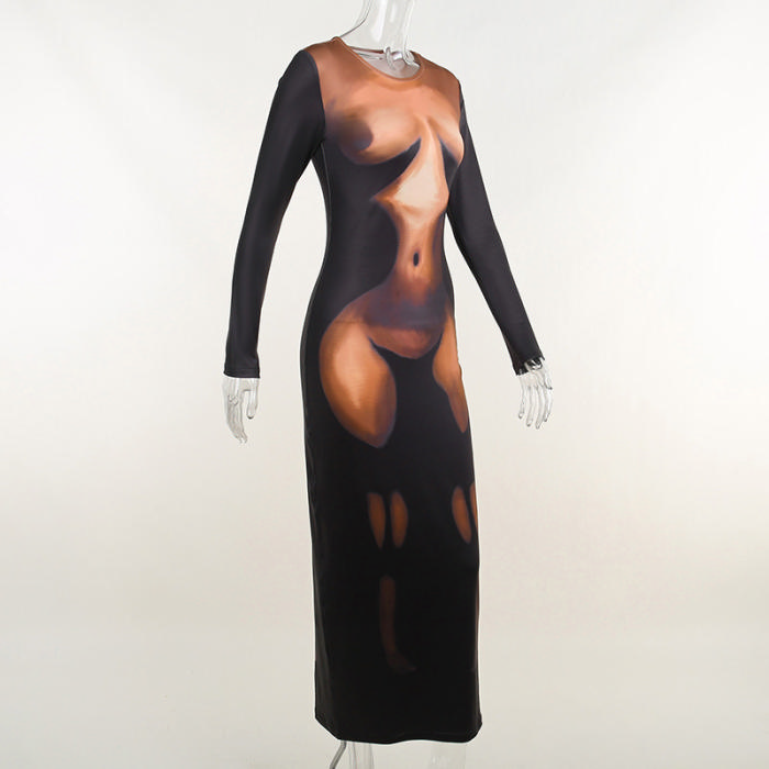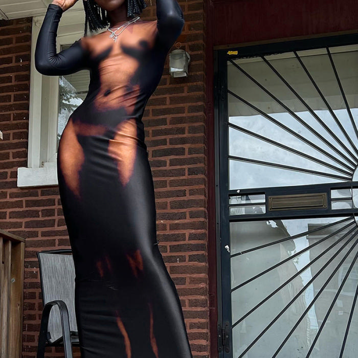 (Real Image)2022 Styles Women Fashion INS Styles Print Long Sleeve Maxi DressSKU: #XF92551-1