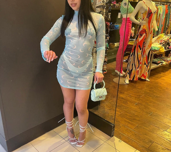 (Real Image)2022 Styles Women Fashion INS Styles Print Long Sleeve Mini DressSKU: #CF59123-2