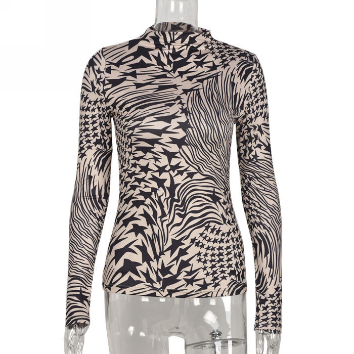 (Real Image)2022 Styles Women Fashion INS Styles Print Long Sleeve TeeSKU: #CF59093-1