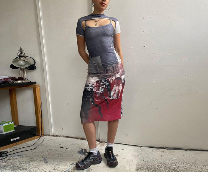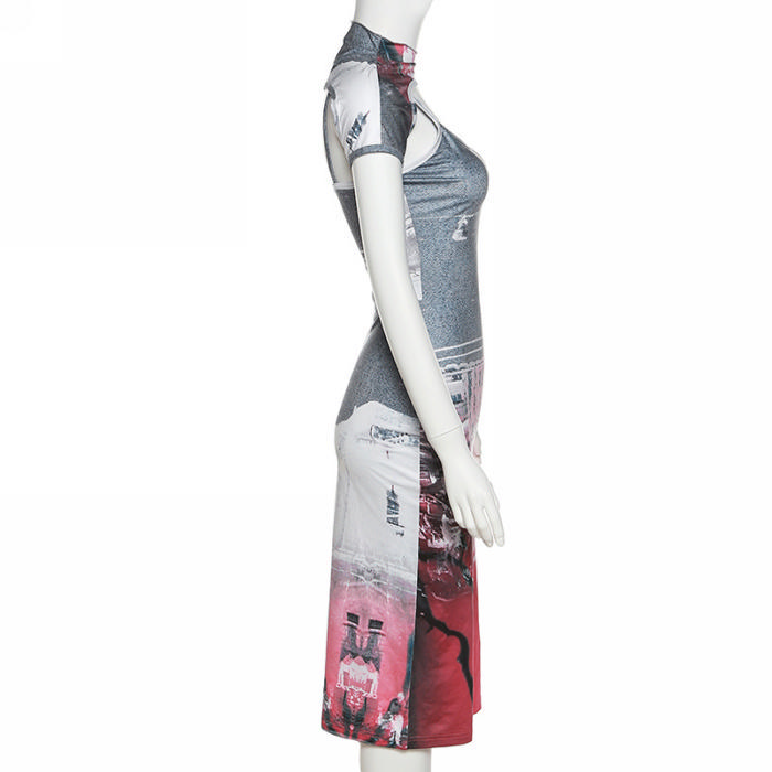 (Real Image)2022 Styles Women Fashion INS Styles Print Maxi DressSKU: #CF49669-1