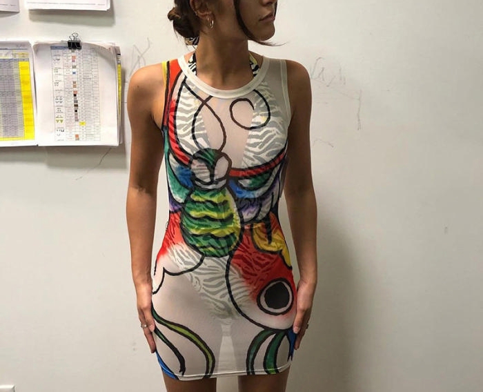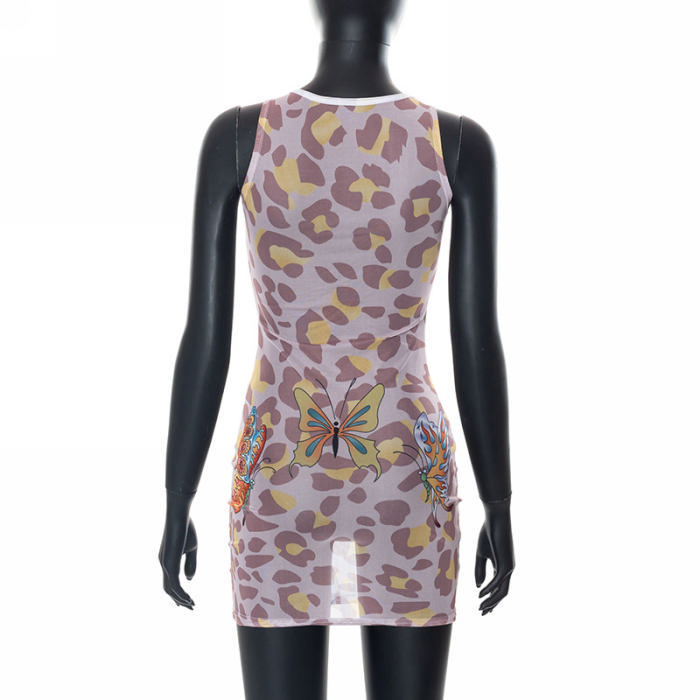 (Real Image)2022 Styles Women Fashion INS Styles Print Mesh Club DressSKU: #CF68043-1